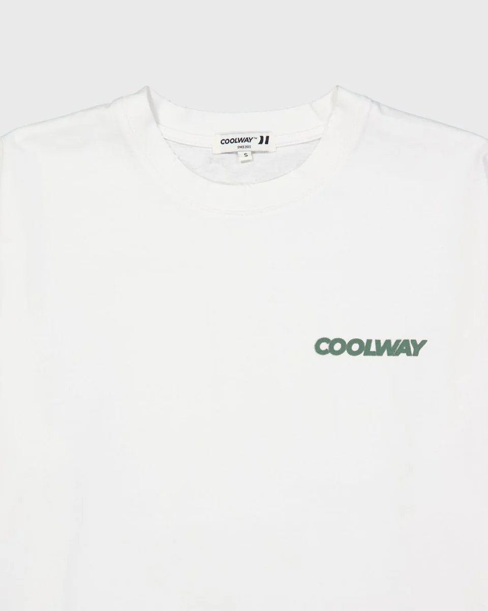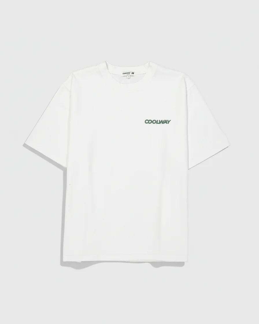 Una camiseta suave y de diario, confeccionada en 100 % algodón con un tacto de gramaje medio (220 g/m²). Presenta una base gris tonal y un estampado con efecto spray del doble logotipo de Coolway para un look sutil y urbano.