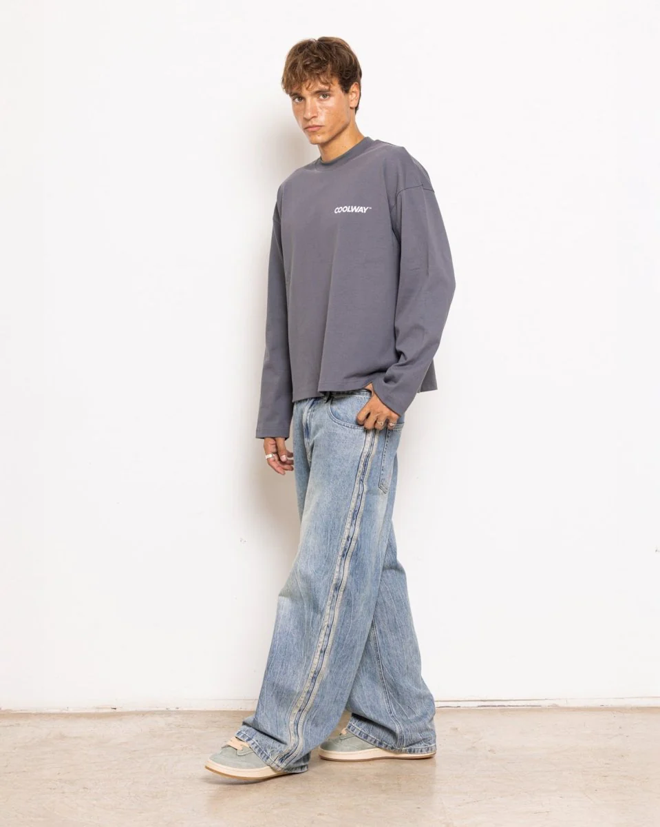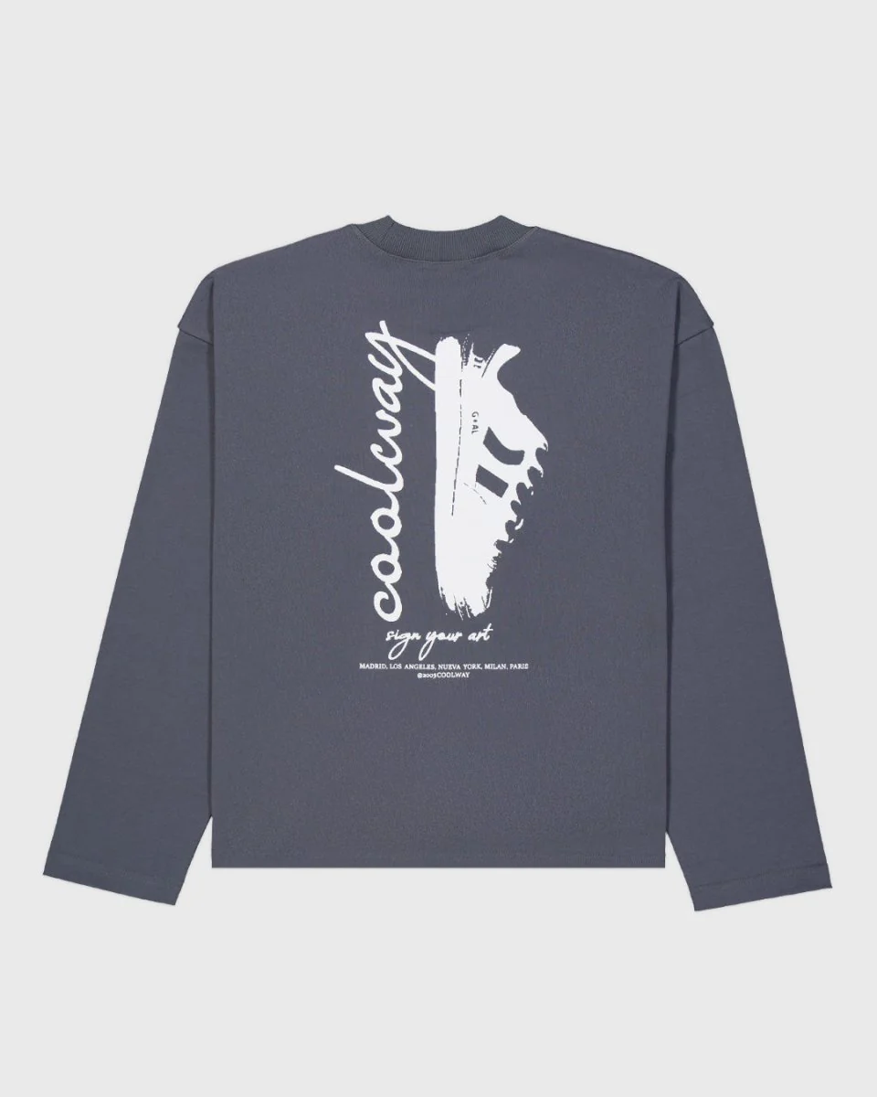 Una camiseta premium de manga larga con una silueta relajada y cuadrada, y un tacto suave y estructurado. Hecha en 100 % algodón (280 g/m²) para un gramaje medio-alto y perfecta para todo el año. Presenta el logotipo de Coolway estampado en la parte delantera y una obra de arte llamativa en la trasera.